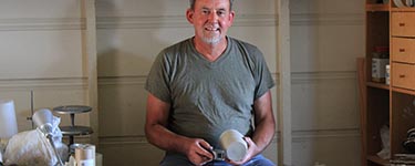 | Ron Milligan began potting in 1972 during his years as an undergraduate student at Leeds University in England and continued till 1978 in London. Then family and career intervened and It wasn't until 2007 that he revisited the art medium, when he threw himself (and his pots) into action. His creations spilled out of his garage studio and into the family courtyard. He is inspiredly by the natural world, drawing on natural colors, patterns and shapes from tide pools to lichens. In 2015, Ron developed paralysis in his left arm and had to reinvent traditional pottery methods for a one-handed practitioner. His pots today are thrown, sculpted, glazed and finished with one hand. |