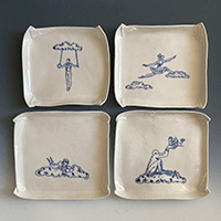 Geraldine Vergnet has been working in clay for 15 years. She learned in France before moving to San Diego. Geraldine approaches each of her porcelain pieces like a precious blank white canvas where she takes her time to paint uncluttered, fantastically elegant, witty and charming pieces that can be used or hung on a wall as an art piece in its own right. | |